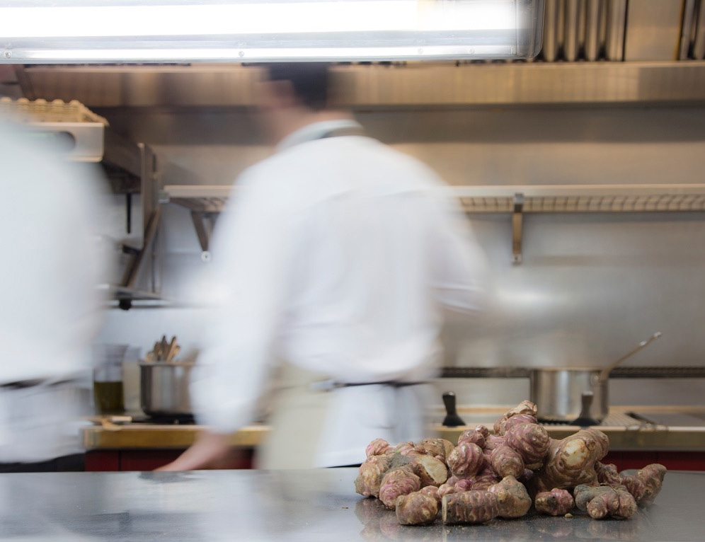 Treballant per elaborar els plats, barreja de cuina tradicional catalana i mediterrània, amb tocs moderns, basats en els millors productes de temporada i proximitat.