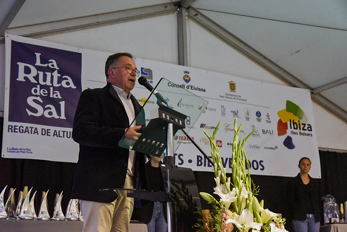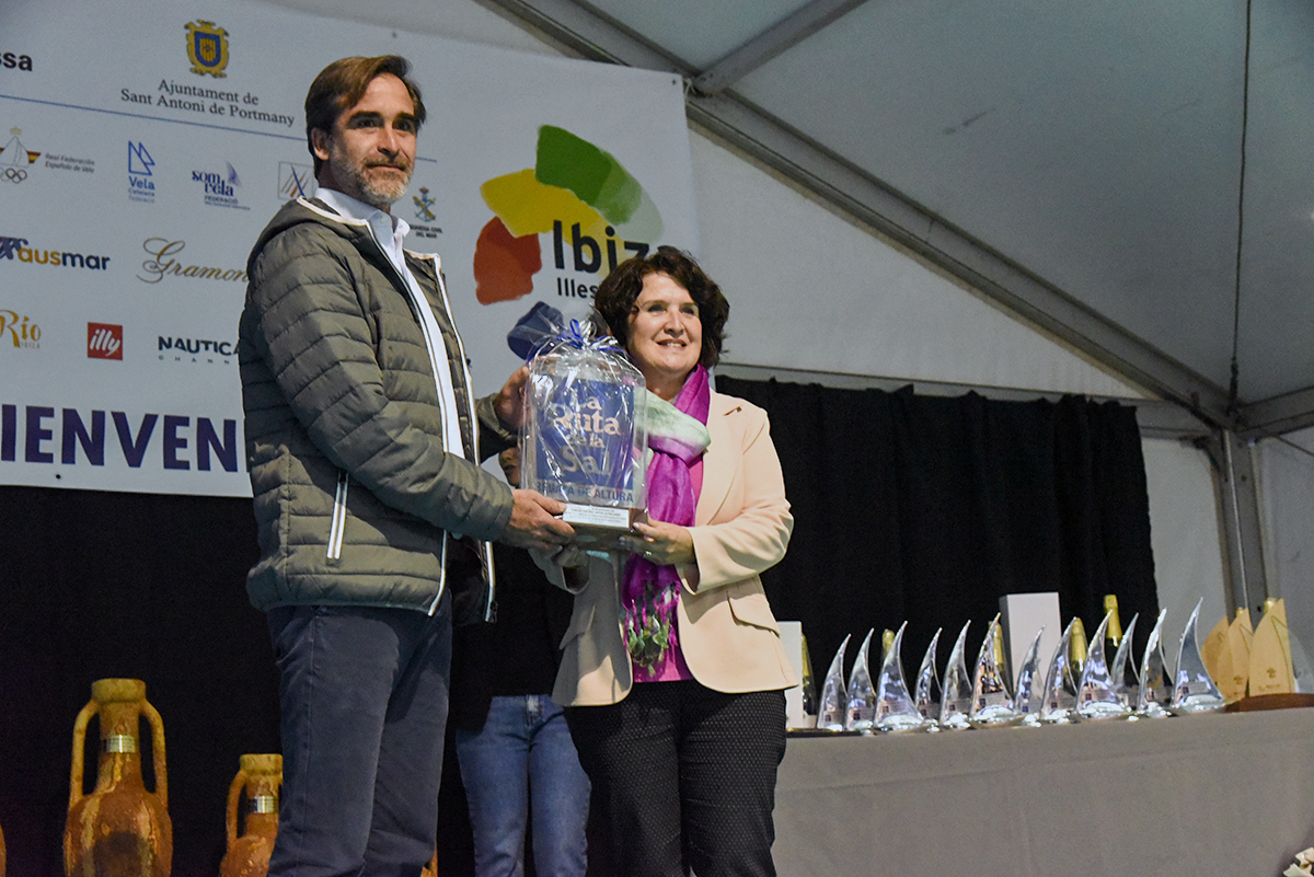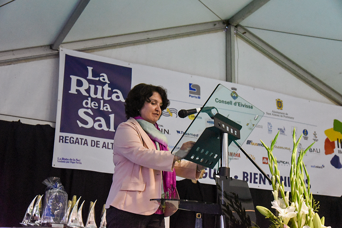 La Ruta de la Sal celebró ayer la ceremonia de entrega de trofeos en su trigésimo quinta edición en Sant Antoni de Portmany. Una cita con el sector náutico en la que la organización hizo entrega de un distintivo al Club Nàutic de Sant Antoni de Portmany a modo de reconocimiento por su 50 aniversario, trofeo que recogió su vicepresidenta, Francisca Ribas.