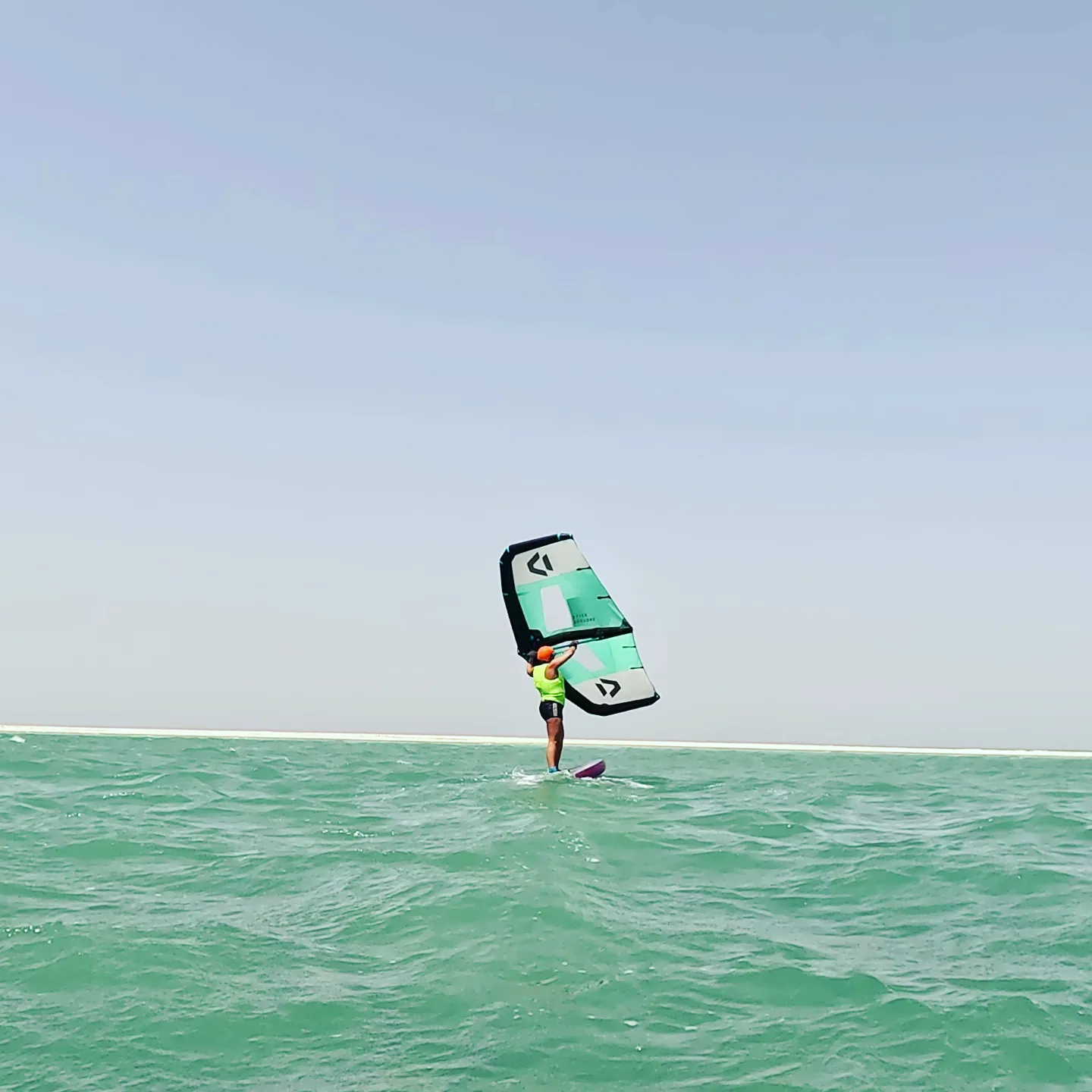Ese día tan esperado llego y pude salir mar afuera y me aventure en toda la bahía de Doha, el agua estaba tranquila, verde, preciosa y los edificios ya no me molestaban tanto porque por fin podía ver lo que me interesaba esa unión que tengo con el mar pero de forma apaciguada, lenta. No había nadie, los guardias estaban aun durmiendo y algunos no se percataron de que pase zona limitadas. Era puro silencio y yo ahí aventurándome y por fin llenando mis 4 sentidos al estilo Coco. Navegue unos 40km sin rumbo ese día y estuve montada en la tabla unas 7h dando tumbos de un lado a otro, viendo la ciudad desde otra perspectiva.