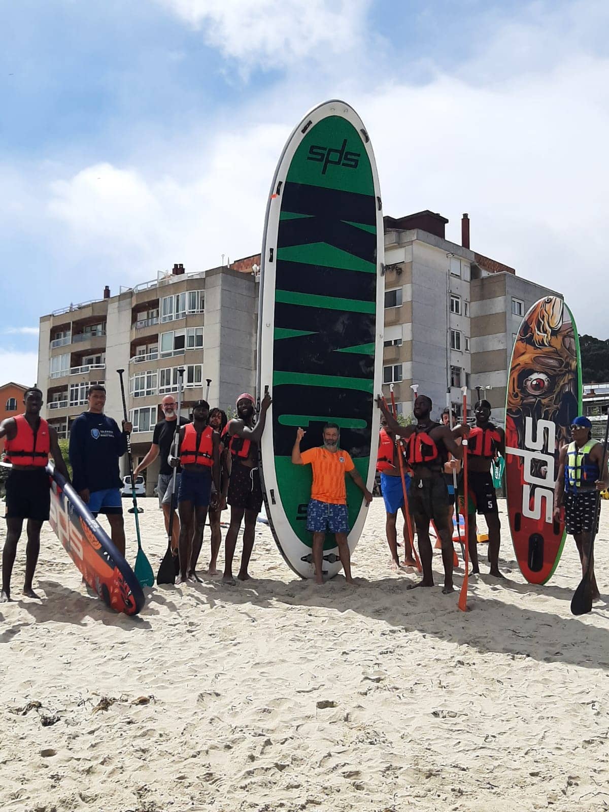 The Ivory Coast basketball team is in Bayonne preparing for the FIBA World Cup, which will take place from August 25 to September 10 in the Philippines, Japan and Indonesia. During these days the members of the selection chose the Baybaysurf school to practice paddle surfing with the SPS boards. The members of the Côte d’Ivoire basketball team were able to test our King model and the exclusive Octopus a Skull